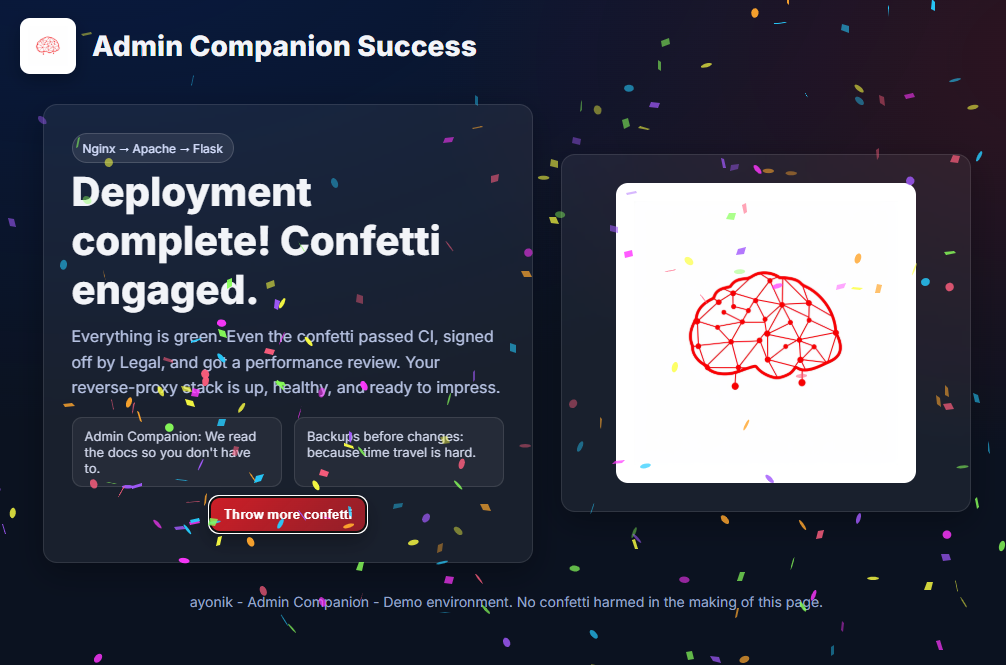 Admin Companion is a tool for efficient, secure, and transparent management of Linux servers using artificial intelligence. Developed for system administrators who want to reliably and time-efficiently handle daily tasks such as service monitoring, script automation, configuration validation, and log analysis.